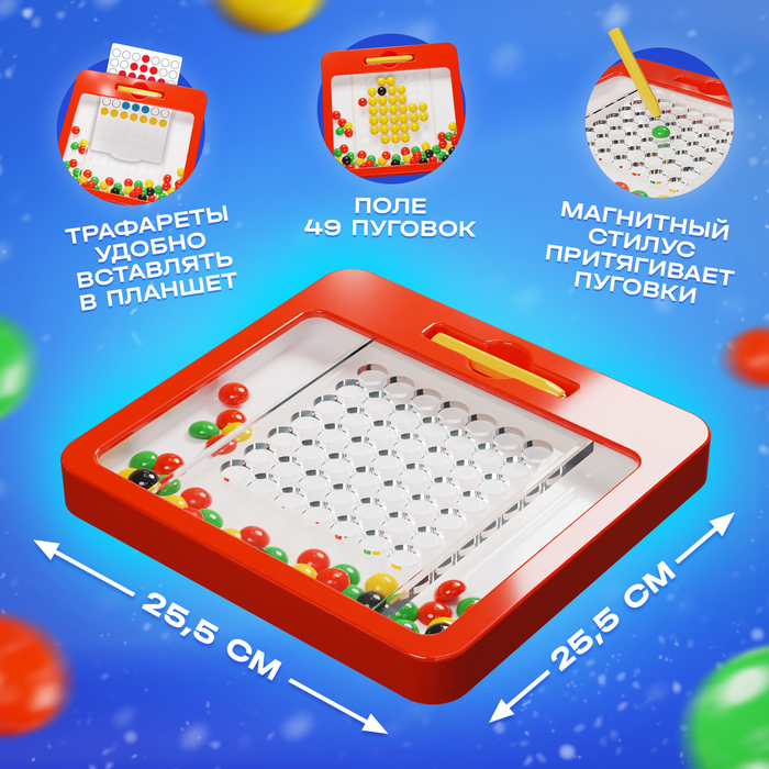 Планшет-мозаика магнитный для рисования «Пуговки», 49 ячеек
