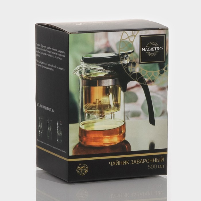 Чайник стеклянный заварочный Magistro «Мехико», 500 мл, с металлическим ситом, пластиковая колба
