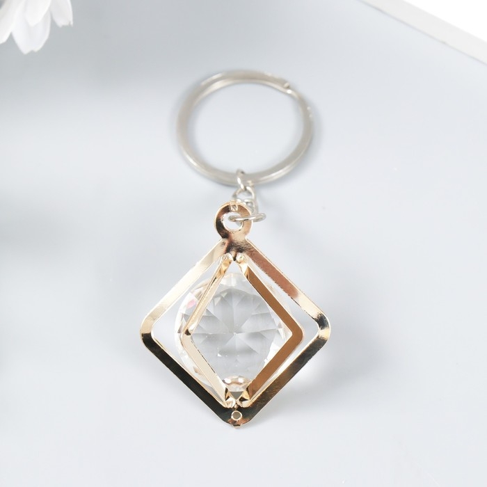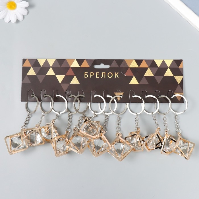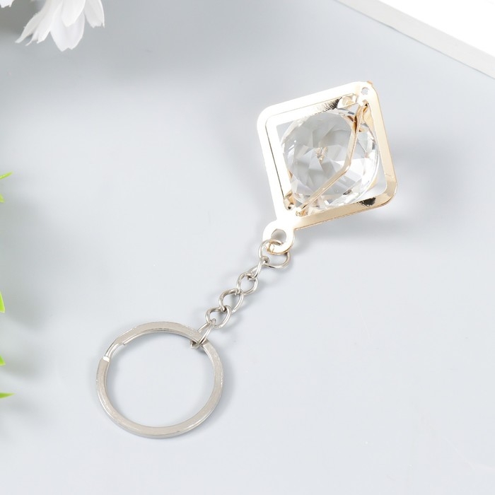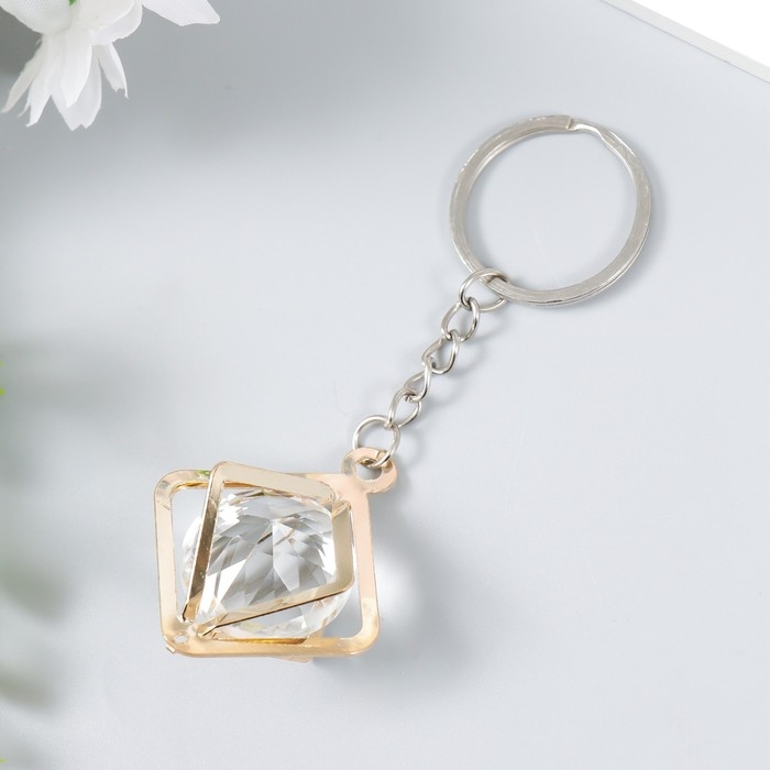 Брелок металл "Куб" кристалл, золото 3х4х4 см