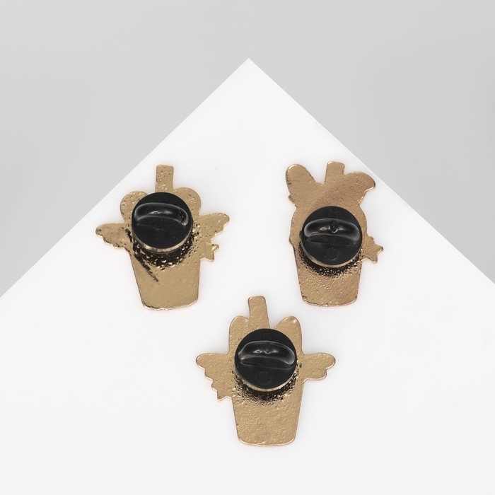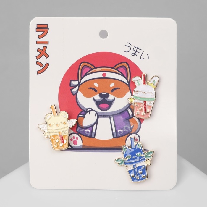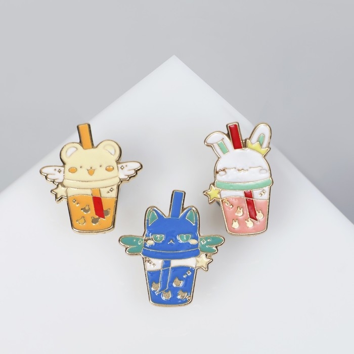 Набор значков (3 шт.) «Стаканчики» зверята, цветные в золоте