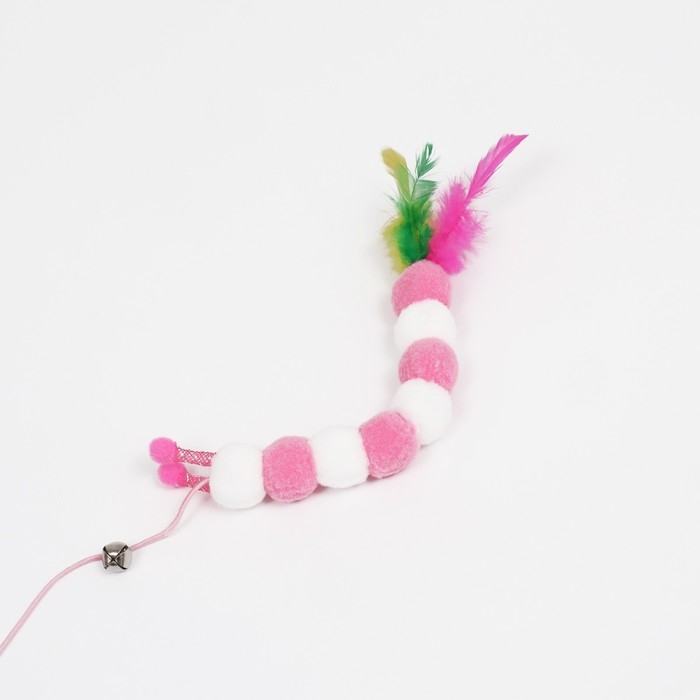 Дразнилка-удочка "Гусеница с перьями", ручка 49 см, розовая