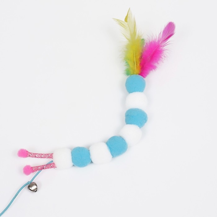 Дразнилка-удочка "Гусеница с перьями", ручка 49 см, голубая