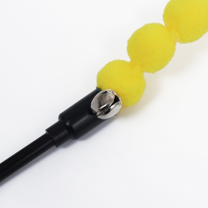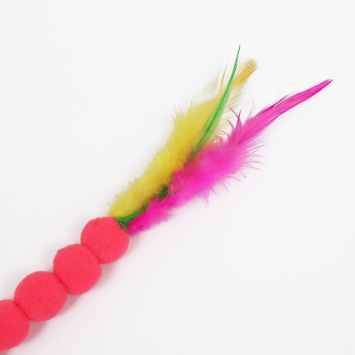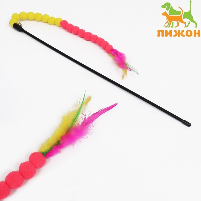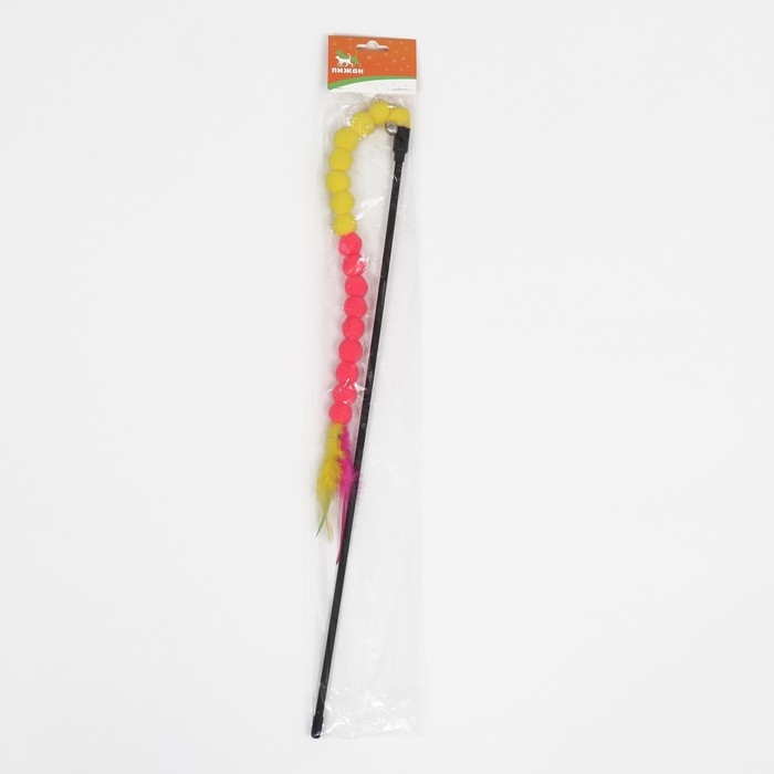 Дразнилка-удочка "Гусеница с перьями", ручка 47 см, жёлтая/розовая