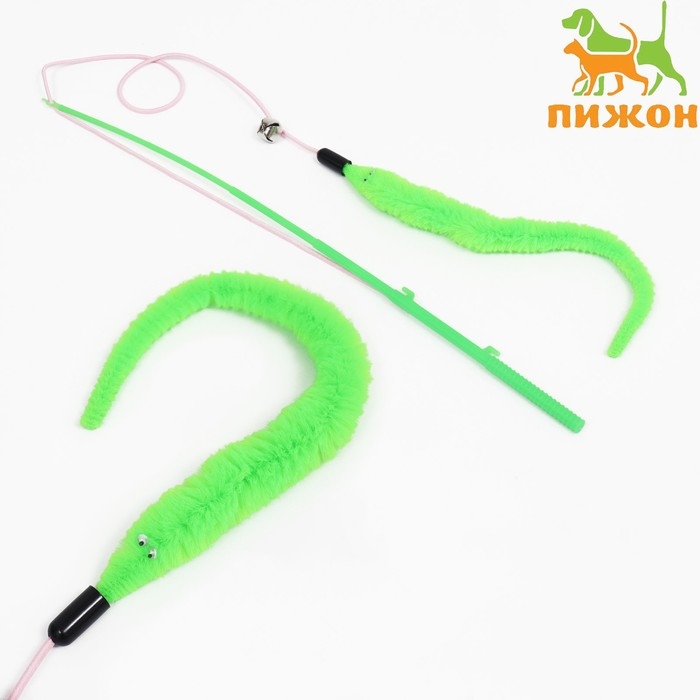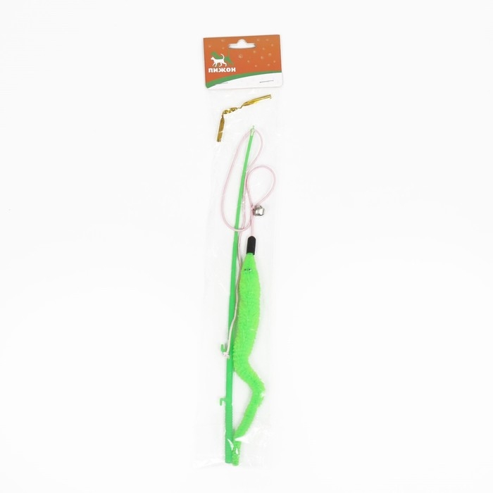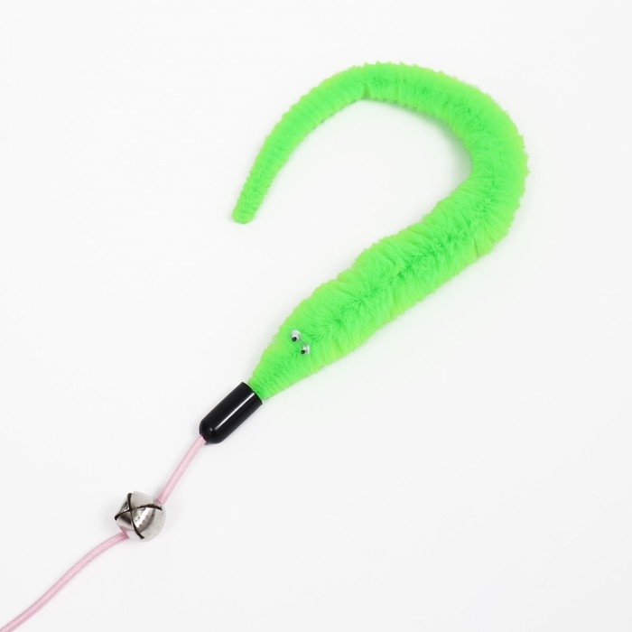 Дразнилка-удочка "Червячок на рыбалке" с бубенчиком, 30 см, зелёная