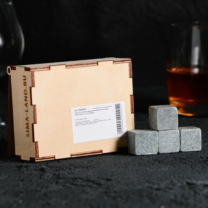 Новый год. Камни для виски в деревянной шкатулке «В поиске приключений», 4 шт