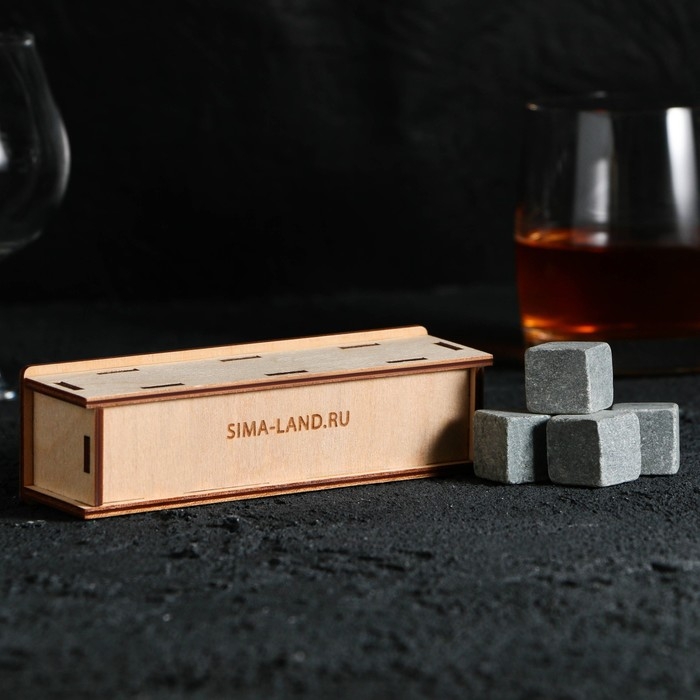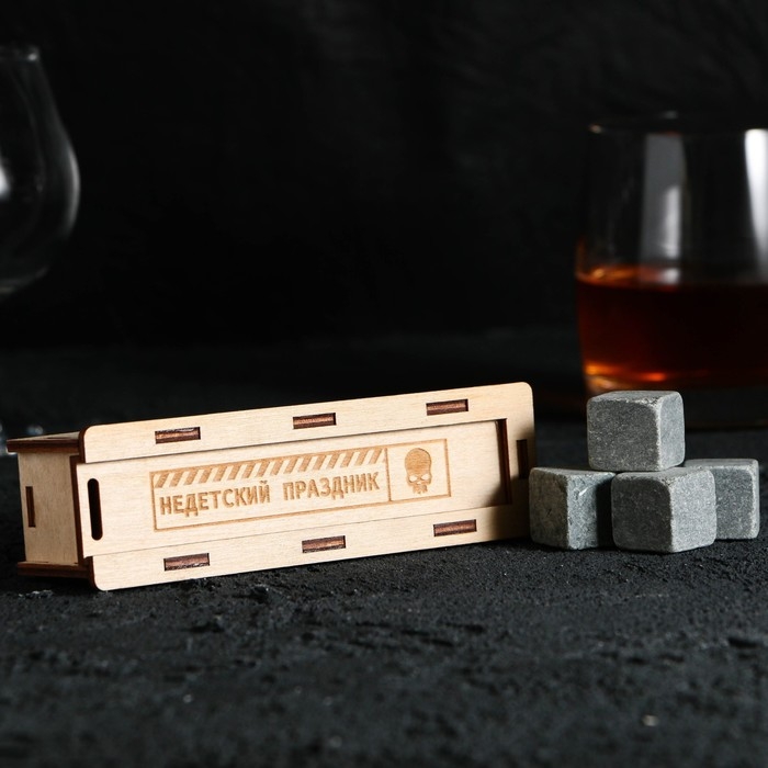 Камни для виски в деревянной шкатулке с крышкой «Недетский праздник», 4 шт