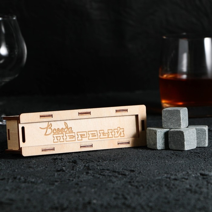 Камни для виски в деревянной шкатулке с крышкой «Всегда первый», 4 шт