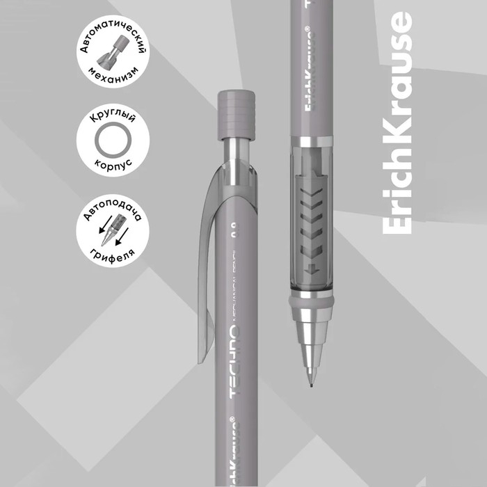 Карандаш механический с ластиком ErichKrause "Techno", НВ, грифель d=0.9 мм, в коробке, микс