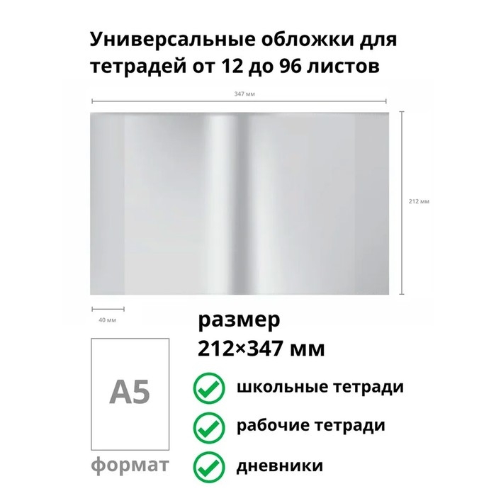 Набор обложек ПЭ 5 штук, 240 х 430 мм, 200 мкм, для прописей и рабочих тетрадей, универсальная, с закладкой, МИКС