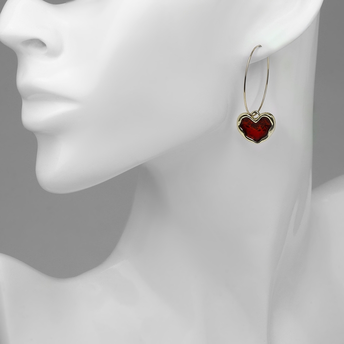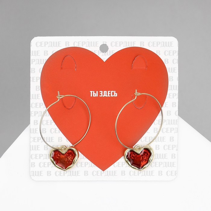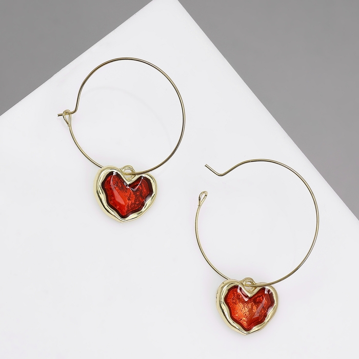 Серьги-кольца «Сердечки» глазурь, цвет красный в золоте