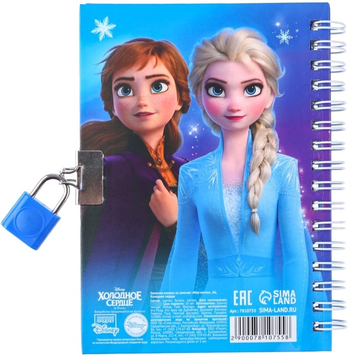 Записная книжка на замочке А6, "Мои мечты", 50 листов, Холодное сердце