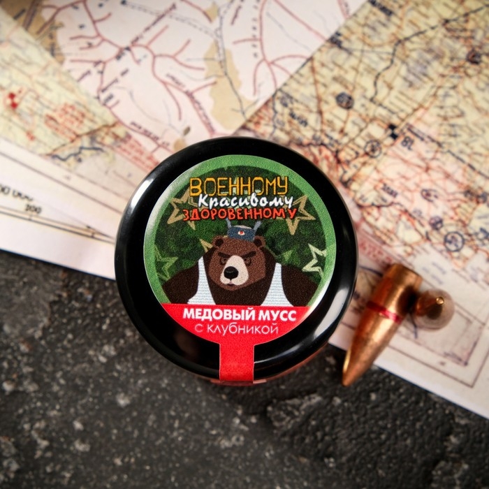 Медовый мусс "Военному, Красивому, Здоровенному", с клубникой, 30 г