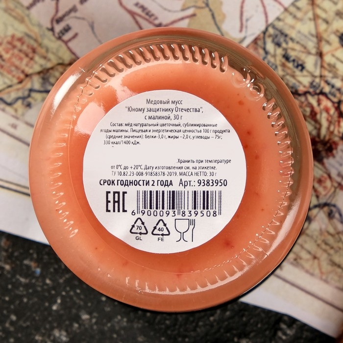 Медовый мусс "Юному защитнику Отечества", с малиной, 30 г