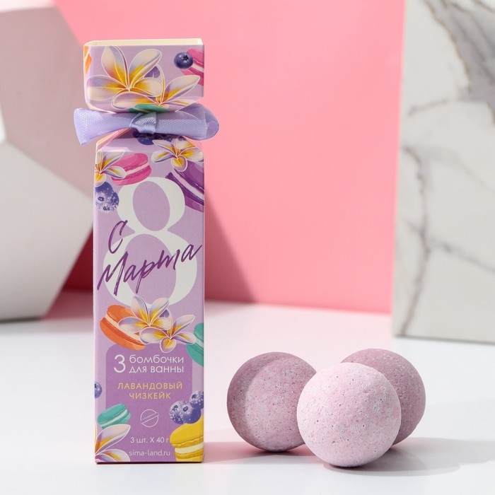 Подарочный набор косметики «С 8 Марта!», бомбочки для ванны 3 х 40 г, ЧИСТОЕ СЧАСТЬЕ