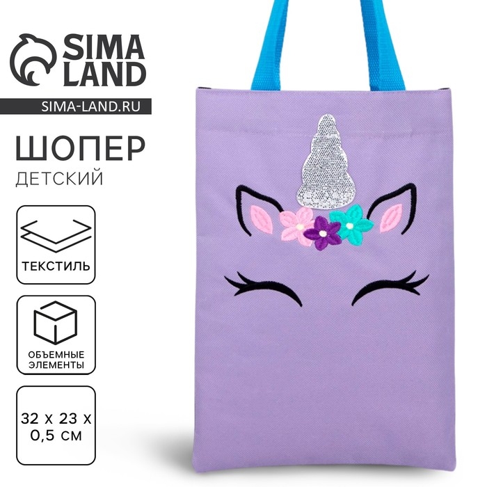 Шопер детский для девочки с допиками «Единорожик», 32х23см