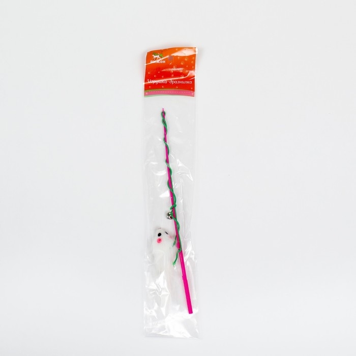 Дразнилка-удочка "Мышонок" с белой мышью на розовой ручке