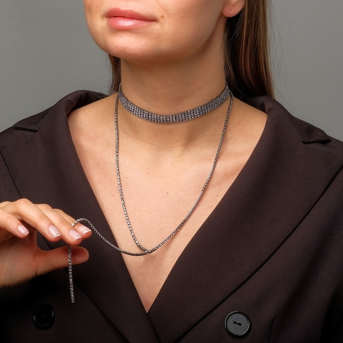 Чокер «Грация искр», тонкий, цвет черно-серебряный, L=30 см