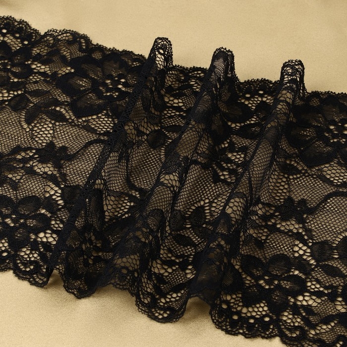 Кружевная эластичная ткань, 195 мм × 2,7 ± 0,5 м, цвет чёрный