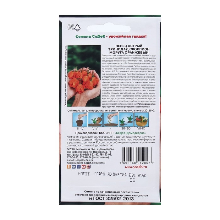 Семена перец острый "Тринидад Моруга Скорпион оранжевый "5шт