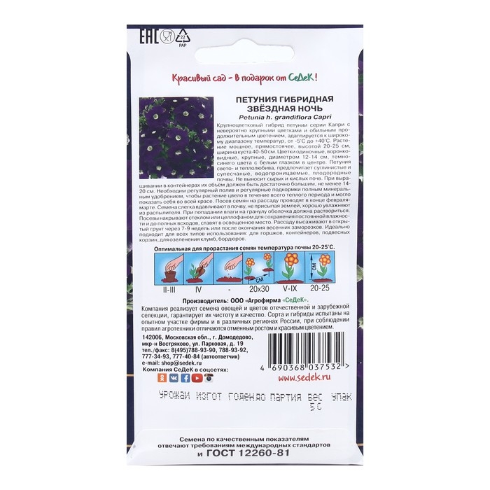 Семена Цветок Петуния "Звездная ночь "F1 1 . 5 шт
