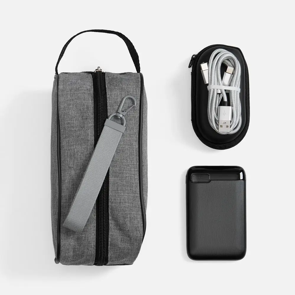 аккумулятор - пластик; кабель - алюминий, оплетка - нейлон; футляр - искусственная кожа; несессер - полиэстер, 300D; ремувка - металл, полиэстер 100%