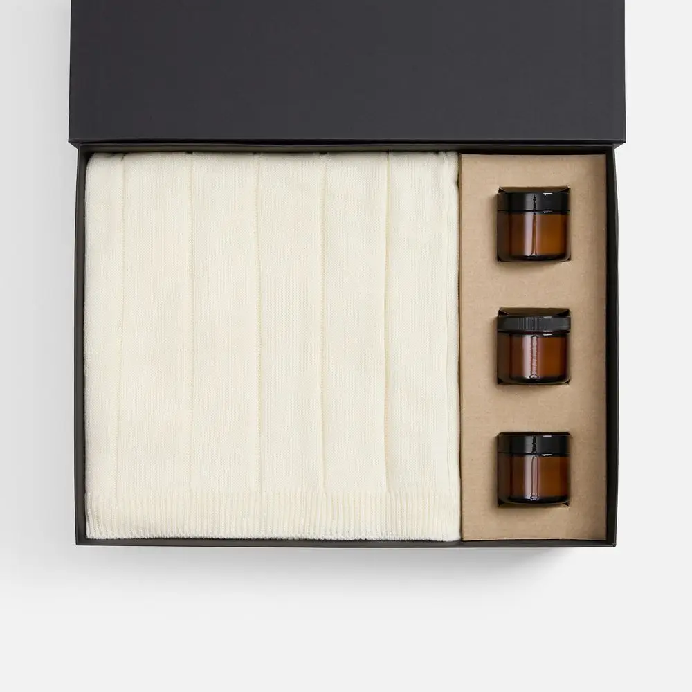 Набор Aromagia — готовое решение для укрепления деловых отношений с самым теплым посылом. Мягкий плед и три изысканных аромасвечи подарят атмосферу тепла, праздника и беззаботности.