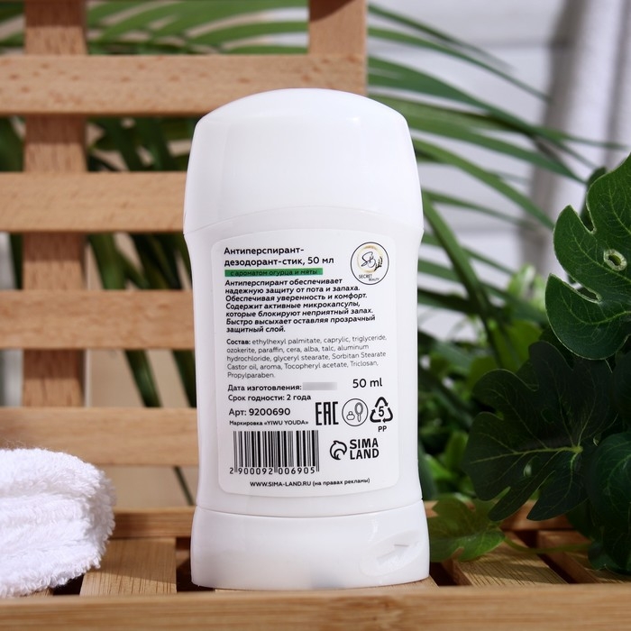 Антиперспирант Secret Beauty «Огурец и мята», стик, 50 мл