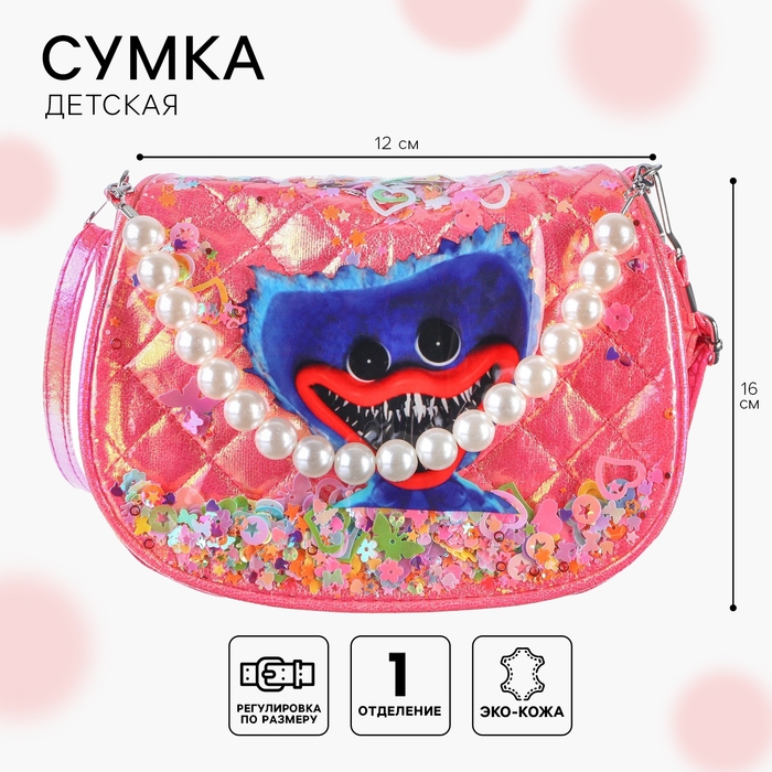 Сумка детская на клапане, 6х12х16 см, регулируемый ремень, ярко-розовый МИКС
