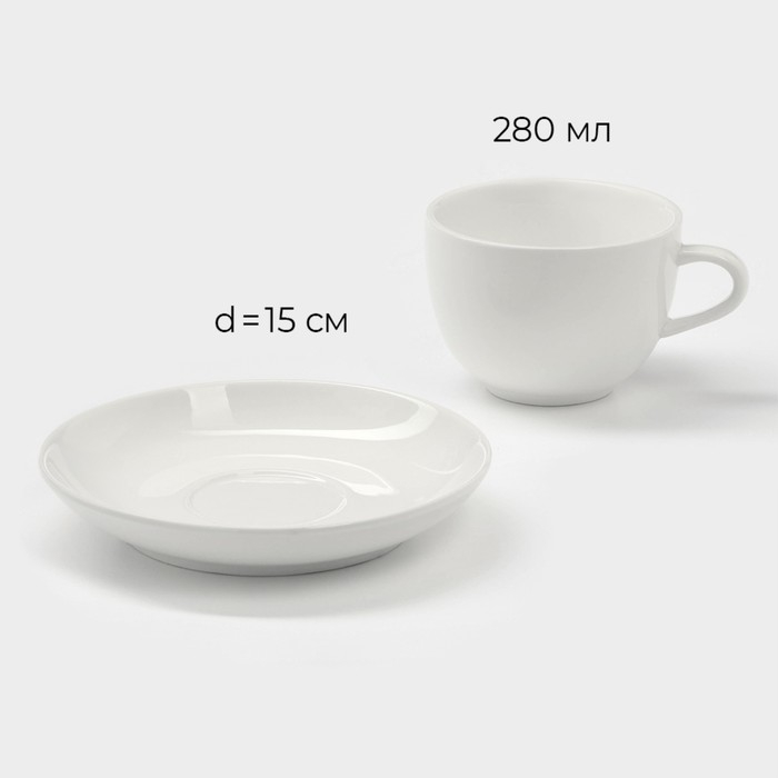 Чайная пара фарфоровая Magistro «Бланш», 2 предмета: чашка 280 мл, блюдце d=15 см, цвет белый