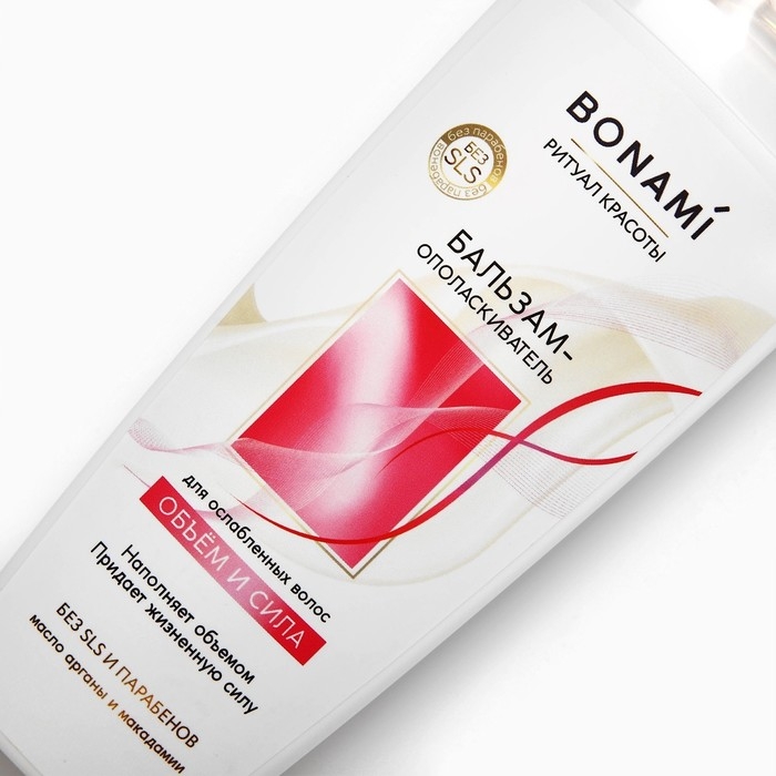 Бальзам для ослабленных волос с маслом аграны и макадамии, объём и сила, 250 мл, BONAMI