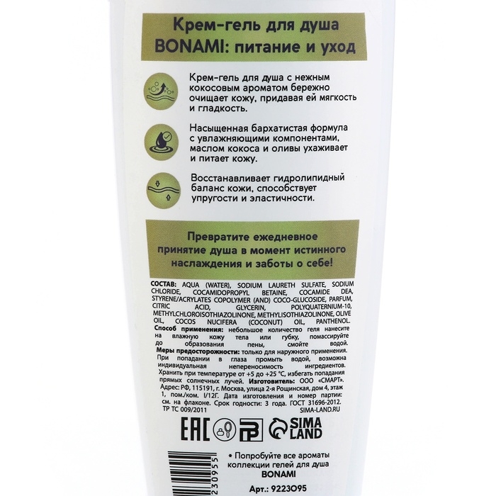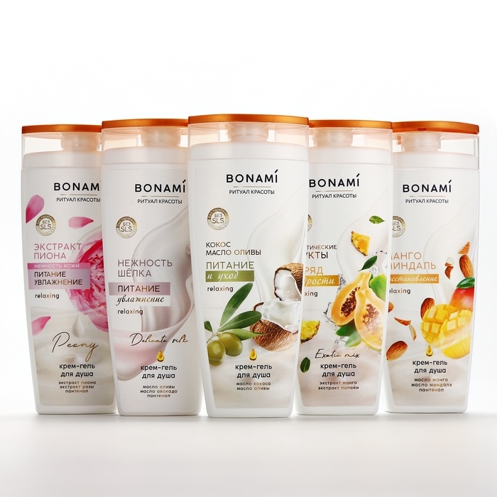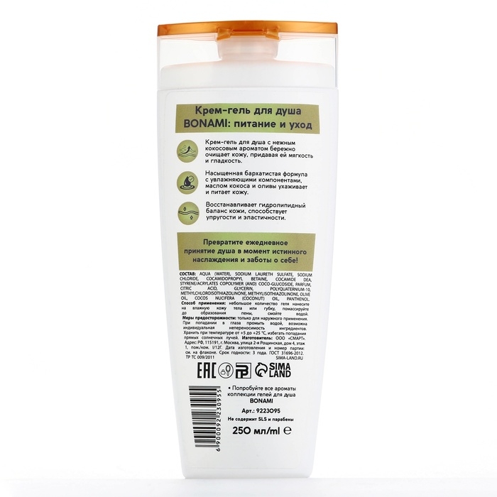 Гель для душа, питание и уход, 250 мл, аромат оливы и кокоса, BONAMI