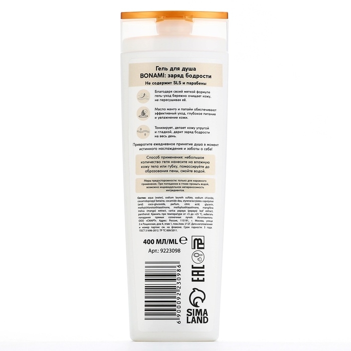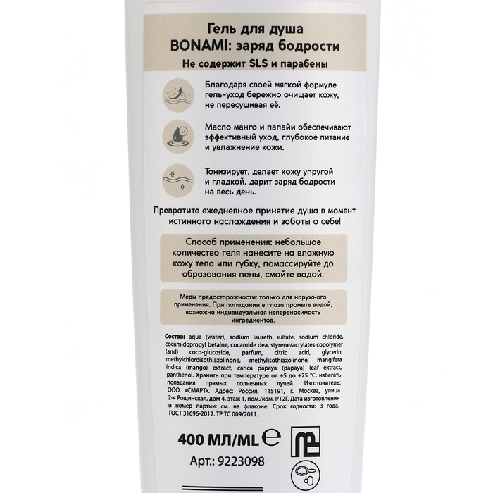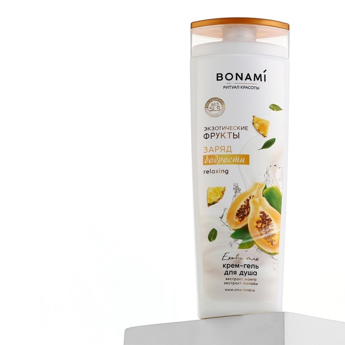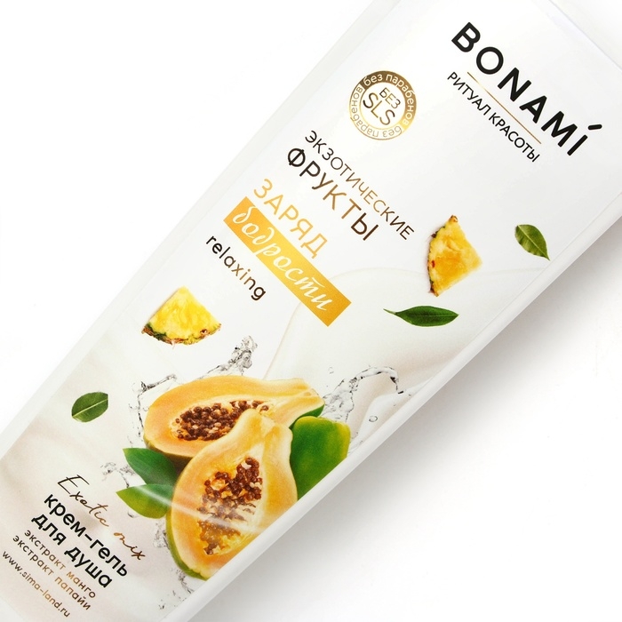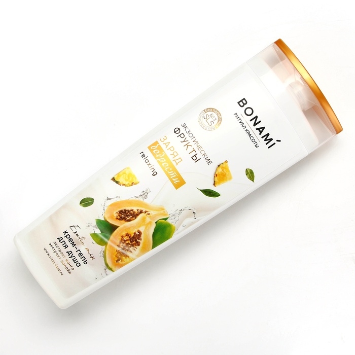 Гель для душа с экстрактом манго и папайи, заряд бодрости, 400 мл, аромат экзотических фруктов, BONAMI