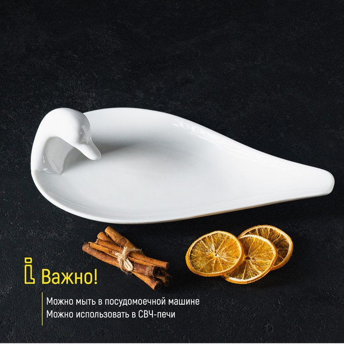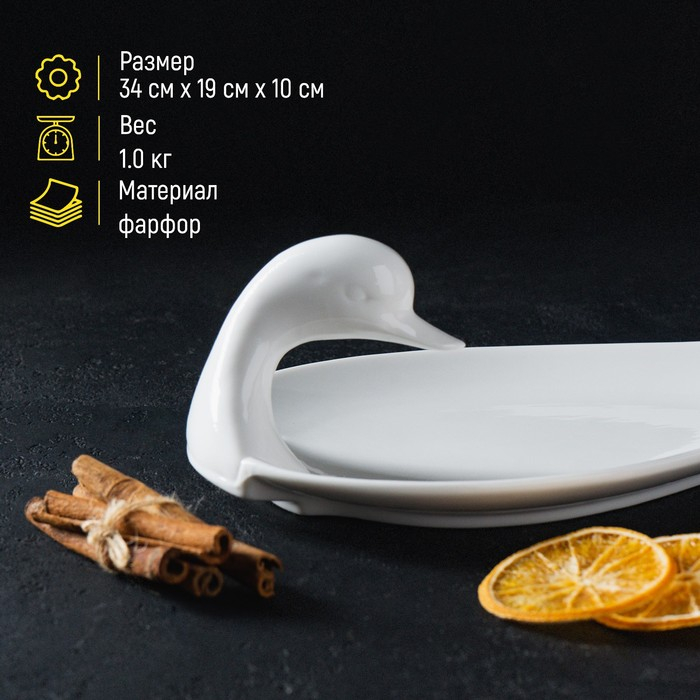 Блюдо фарфоровое Magistro «Лебедь», 34×19 см, цвет белый