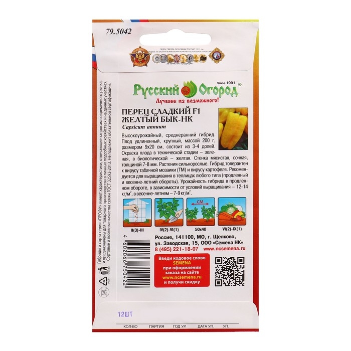 Семена Перец сладкий Желтый бык F1 НК 12 шт