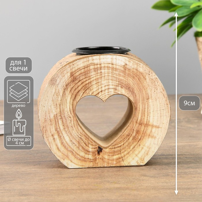 Подсвечник дерево на 1 свечу "Спил- сердечко" 9х10х5 см