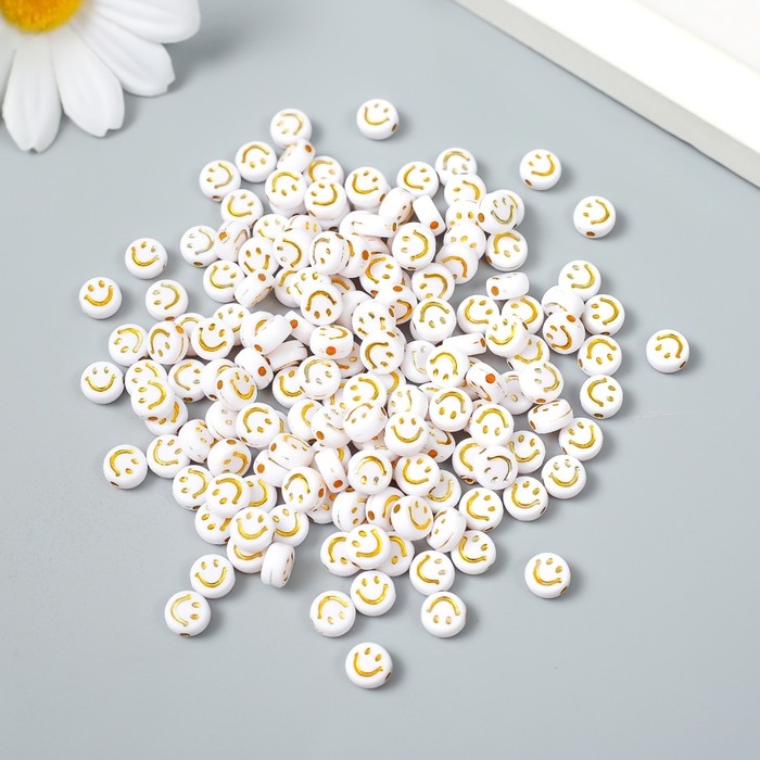 Бусины для творчества пластик "Золотой смайлик на белом" набор 20 гр 0,4х0,7х0,7 см