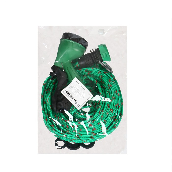 Шланг поливочный резиновый, 12 мм (1/2"), 10 м, в текстильной оплётке, с поливочным пистолетом, цвет МИКС, Greengo