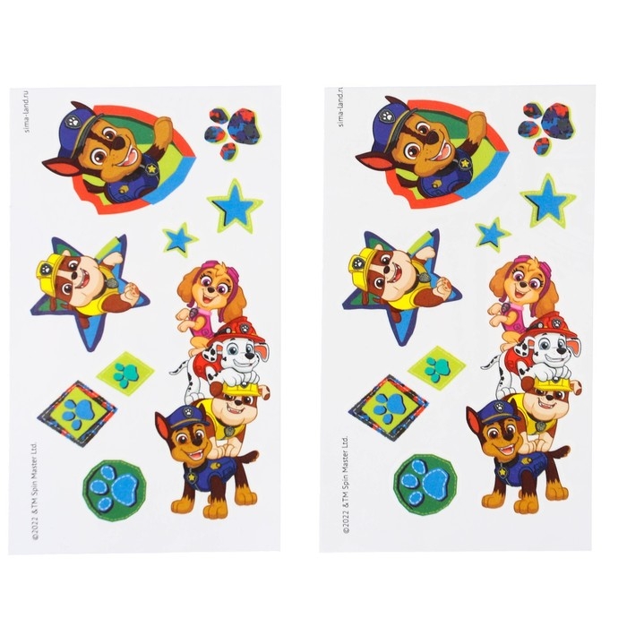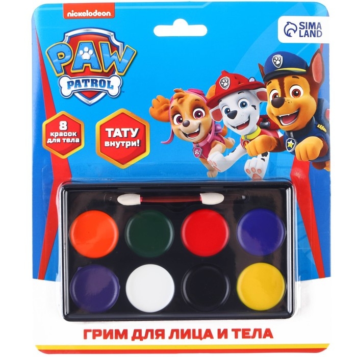 Грим для лица и тела, карандаши 6 цветов, блестки, аппликатор, тату "Команда", Щенячий патруль
