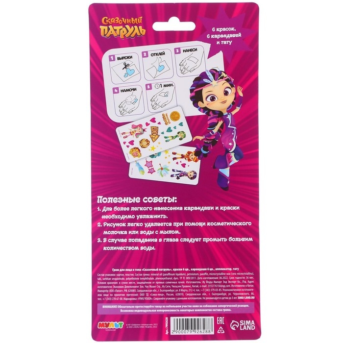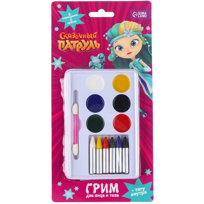 Грим для лица и тела, краски 6 цветов, карандаши 6 цветов, аппликатор, тату "Подружки", Сказочный патруль