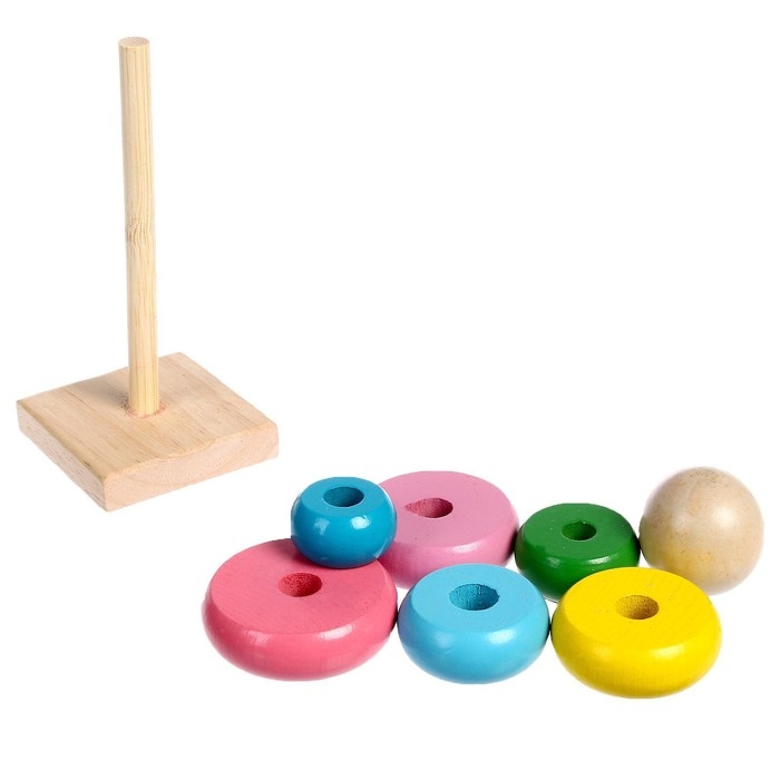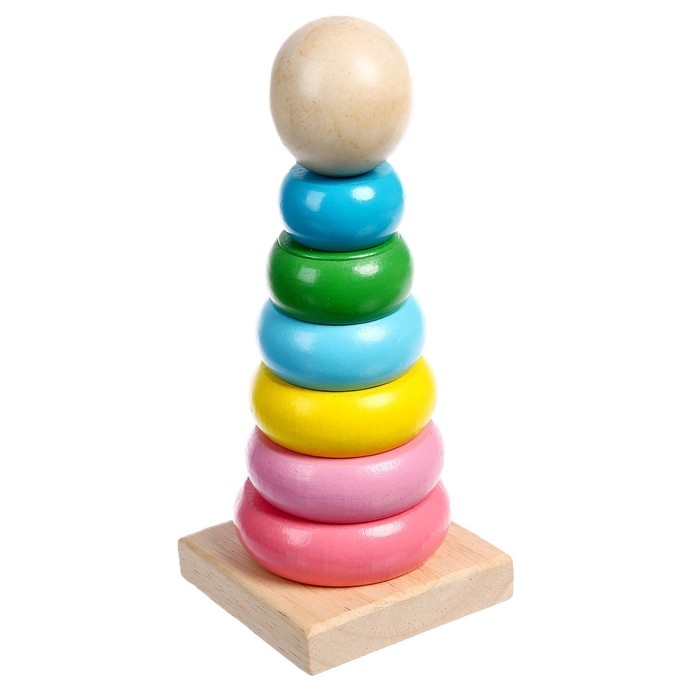 Яркая пирамидка состоит из 7 приятных на ощупь деталей, которые изготовлены из натуральной древесины и покрыты безвредной краской. Задача малыша — собрать все фигурки и расположить их на основании. Эта увлекательная головоломка поможет потренировать пространственное мышление, цветовое восприятие, логику и мелкую моторику рук.