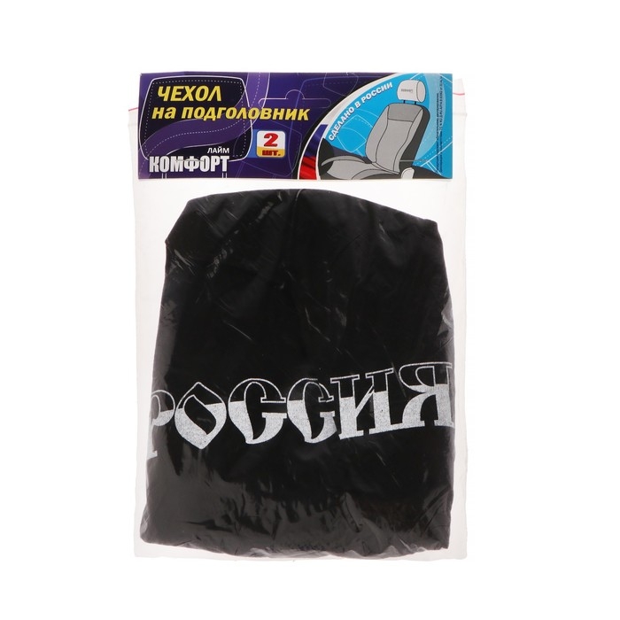 Чехлы на подголовник "Россия", черные, набор 2 шт