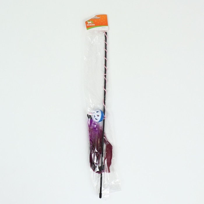 Дразнилка-удочка "Канарейка", 50 см, шар синий/белый, фиолетовые перья