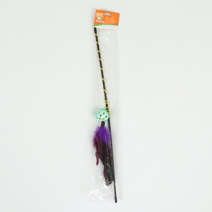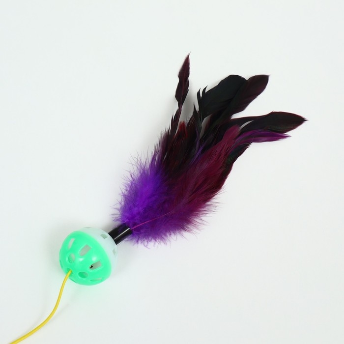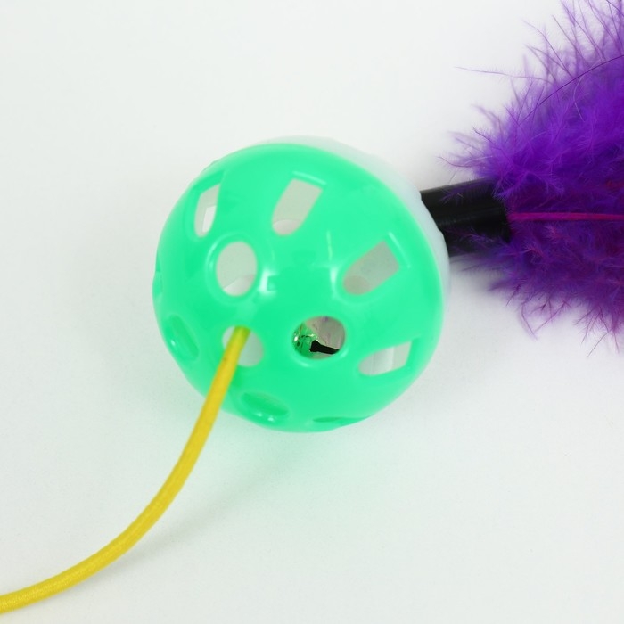 Дразнилка-удочка "Канарейка", 50 см, шар зелёный/белый, фиолетовые перья