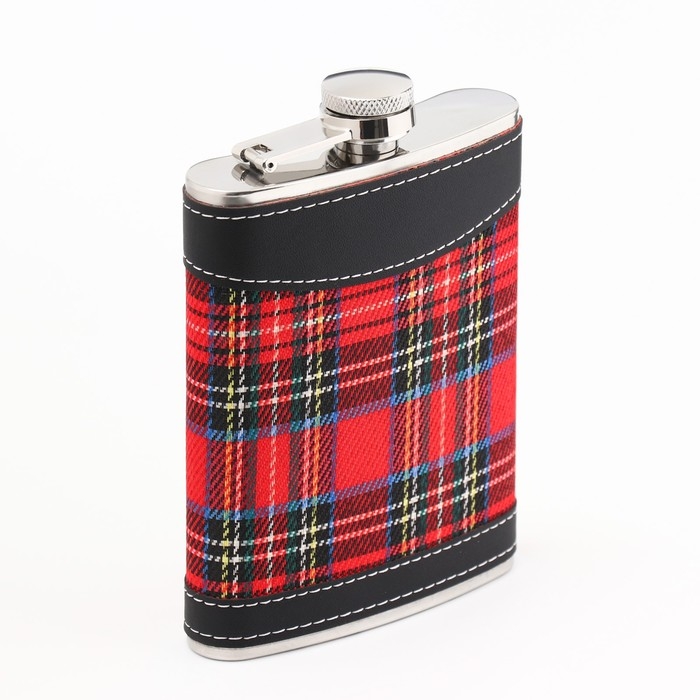 Фляжка для алкоголя "Клетка", нержавеющая сталь, подарочная, армейская, 240 мл, 8 oz