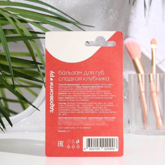 Бальзам для губ Здравсити "Сладкая клубника", 4,2 г