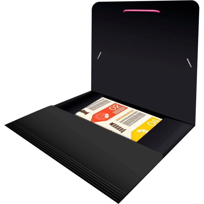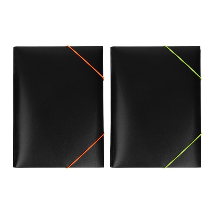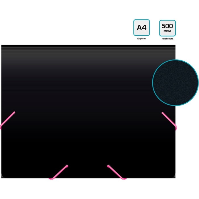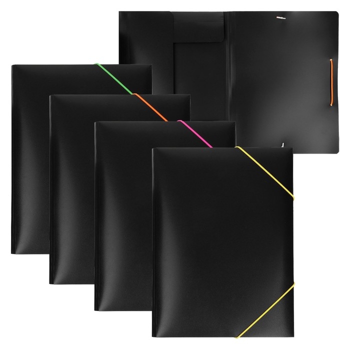 Папка на резинке А4, 500 мкм, Calligrata, корешок 15 мм, чёрная, МИКС (неоновые цветные резинки)