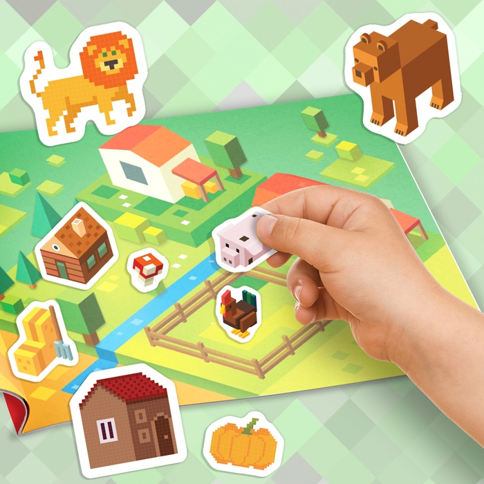 Альбом наклеек «Моя пиксельная вселенная» станет отличным подарком для юных любителей компьютерных игр. Внутри ребёнок найдёт много красочных персонажей в пиксельном стиле.