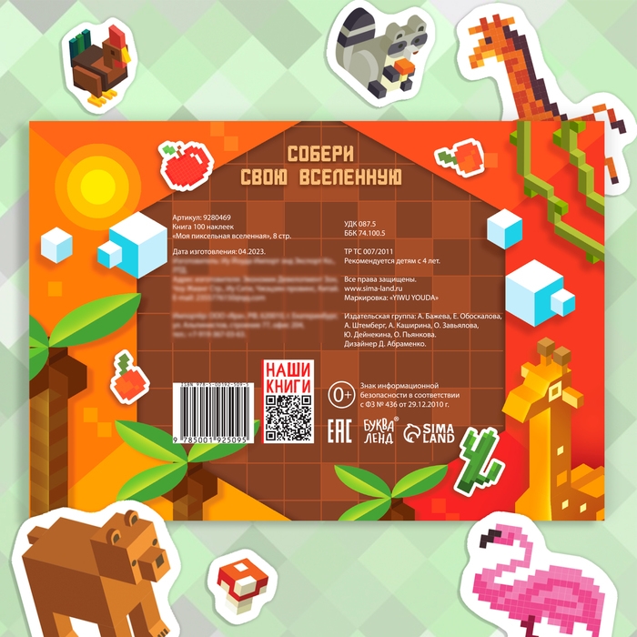 Книга 100 наклеек «Моя пиксельная вселенная», 8 стр.