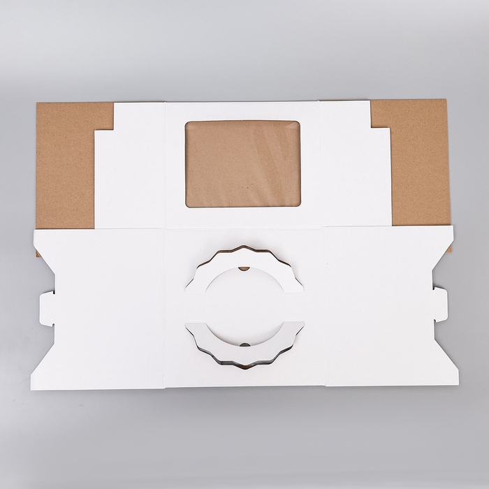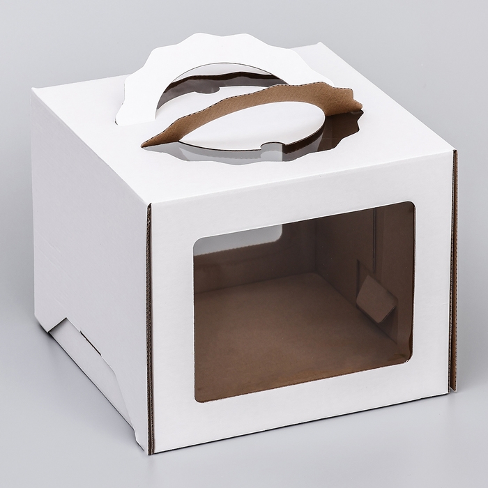 Коробка под торт 3 окна, с ручками, белая, 24 х 24 х 20 см