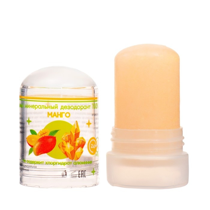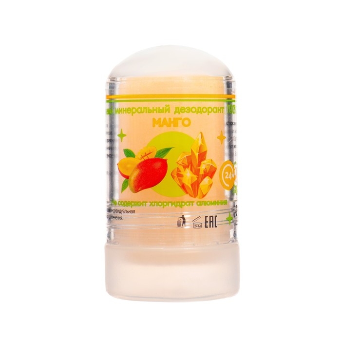 Состав: ammonium alum(аммониевые квасцы), экстракт манго. Не содержит хлоргидрата алюминия, парабенов , фталатов и ароматизаторов. 100% натуральный продукт. Не оставляет пятен и белых следов.